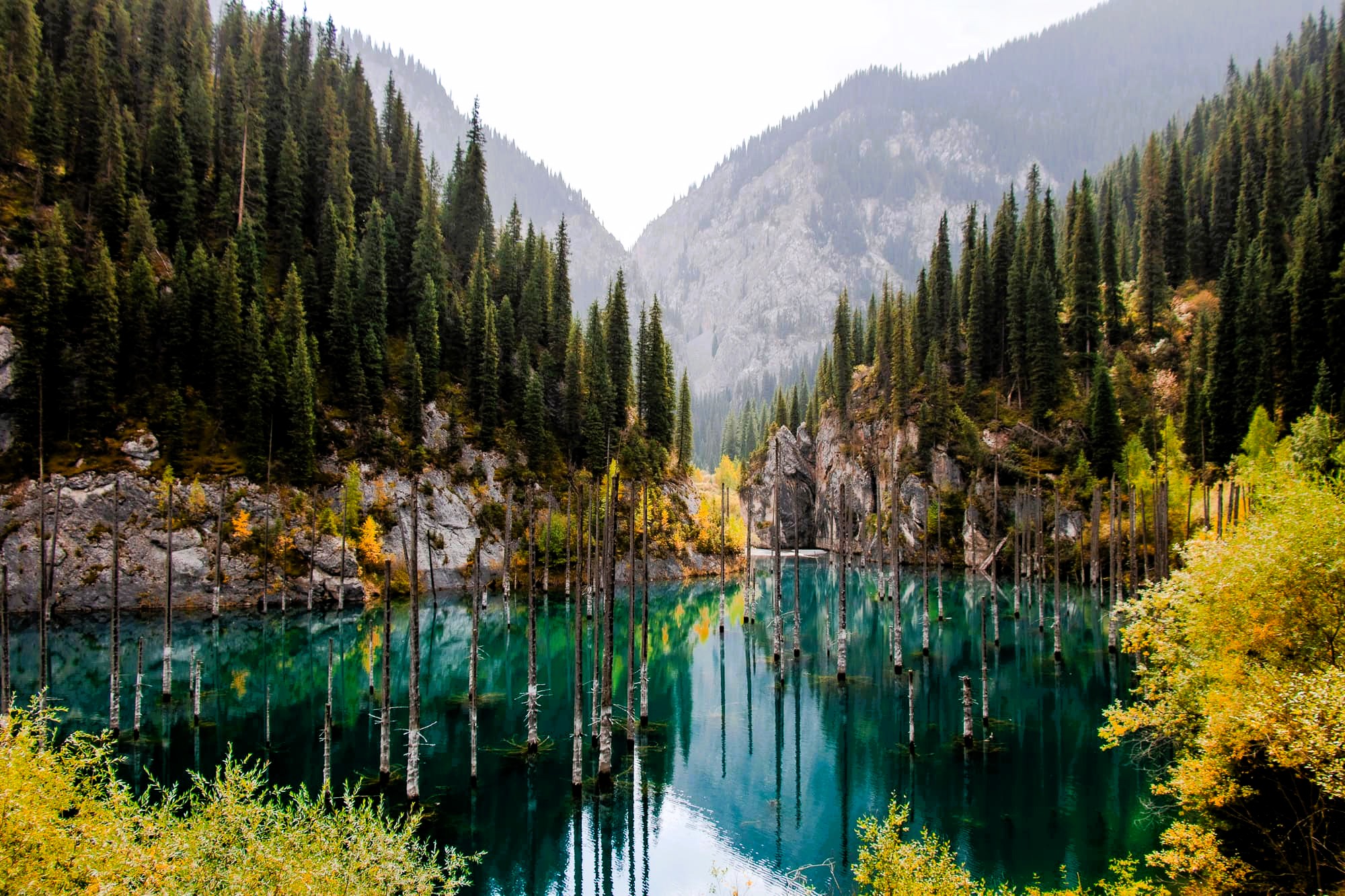 Visit Kolsai and Kaindy Lakes, known for their turquoise waters surrounded by dense forests and snow-capped peaks — a paradise for nature and photography lovers.